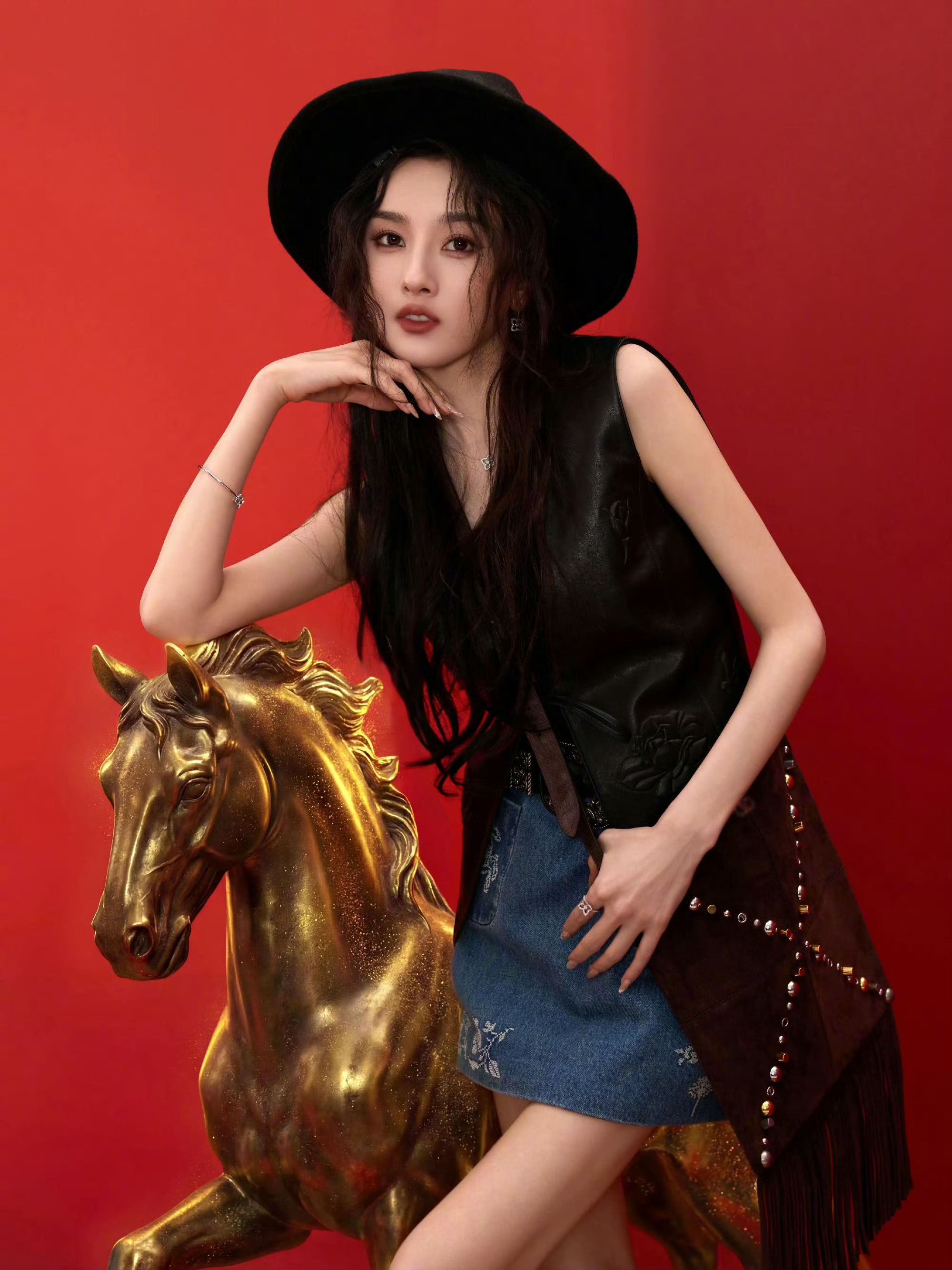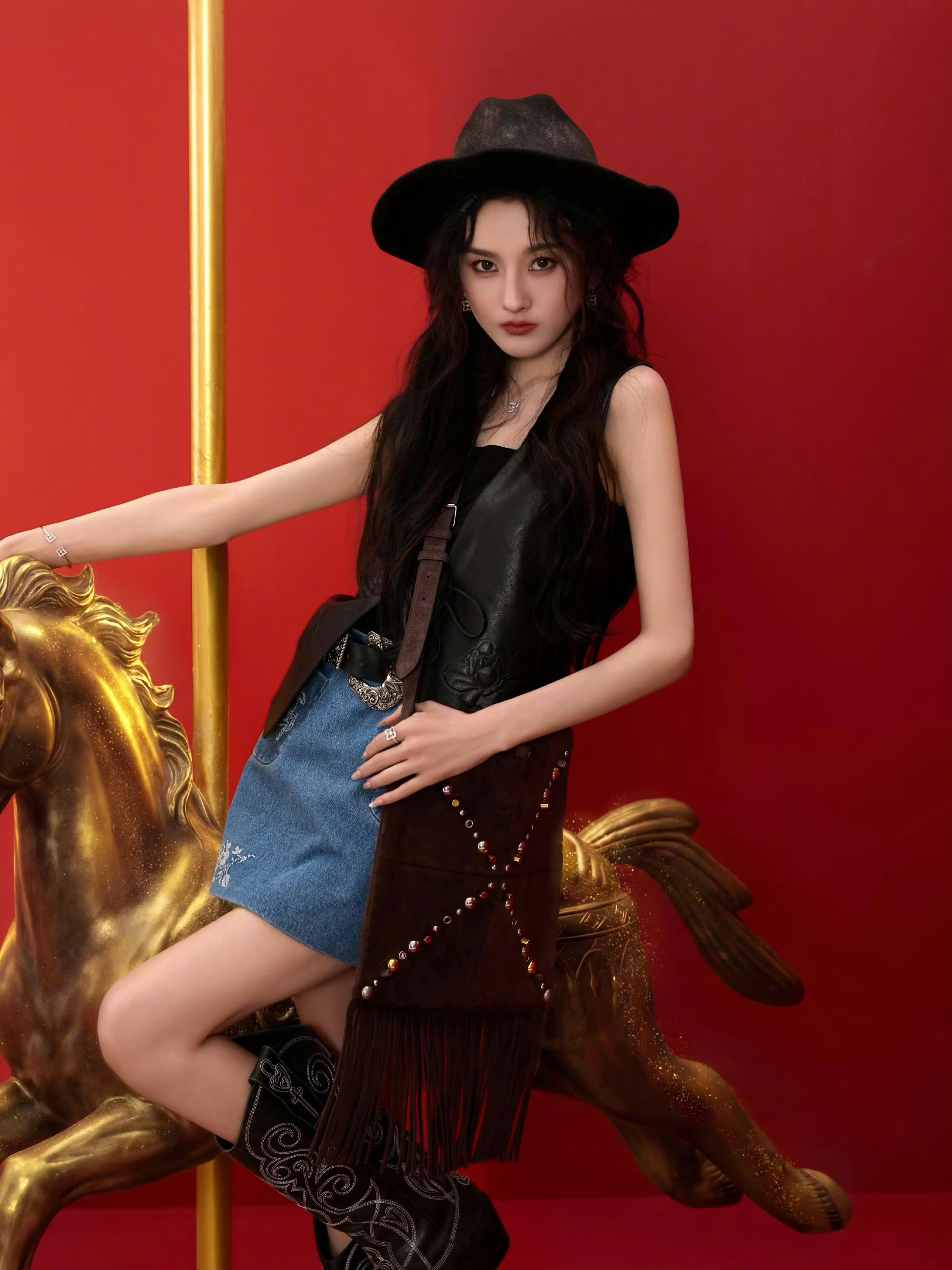 流苏感的铆钉单肩包点睛造型,在红调光影间糅合牛仔摩登与优雅野性,尽显新春飒美风范,这样的造型你打几分呢#宋祖儿时尚穿搭#如何穿出率性和优雅#流苏感造型